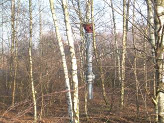 Außer einem Schachtrohr ist nichts mehr vorhanden. Zugänglich.