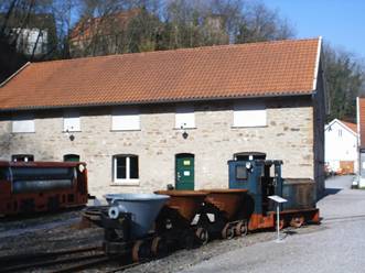 sind viele Gebäude und der Stolleneingang vorhanden. Gelände einer Museumsbahn.