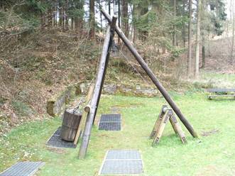 In Kruckel am Johannesberg. Vorhanden ist das Schachthaus,